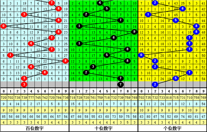 百位:下期开奖百位以1路和2路号码为主,0路号码没有出现,表现非常冷,本期注意0路号码回补,参考号码3。