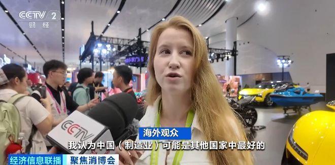 海外观众:我认为中国制造业可能是其他国家中最好的,他们有很多东西,比如机器人、摩托车、汽车。看看这届消博会这么大,这么多东西,有这么多机器人,还有机器狗,看起来真的很好。