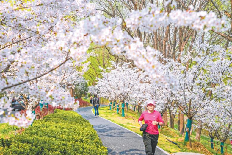 位于朝阳区的北小河绿道沿线,春日樱花盛放如云。 本报记者 武亦彬摄